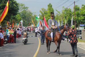 Kirab ini dipimpin oleh rombongan Bregada. Semacam prajurit keraton. Diikuti oleh rombongan KPU Jawa Timur. Di belakangnya, saya bersama teman-teman dari KPU kabupaten/kota se-Jawa Timur, berjalan kaki. Di sepanjang pinggir jalan yang dilalui, masyarakat setempat terlihat antusias menyaksikan. Dengan baju adat kami dari masing-masing daerah, aksi kami ini mirip-mirip karnaval. Apalagi, di rombongan belakang, ditutup oleh barisan marching band dari pelajar di Gunungkidul.