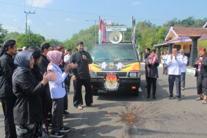 Sebelum berangkat, seluruh rombongan melaksanakan apel pelepasan Kirab Pemilu Tahun 2024 di halaman kantor KPU Pacitan. Apel ini tergolong keren. Sebab, seluruh peserta sudah siap dengan balutan baju adat dari masing-masing daerahnya. Warna-warni. Menunjukkan semangat, antusias dan optimisme dalam menyukseskan tahapan Pemilu Tahun 2024. Gogot Cahyo Baskoro, divisi Sosdiklih Parmas KPU Jawa Timur, menjadi pembina apel.