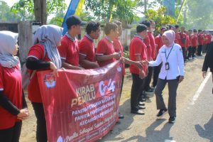 Di depan kantor Kecamatan Pringkuku, sebagian besar barisan teman-teman PPK dan PPS di Pringkuku sudah stand by. Mereka berdiri di sepanjang pinggir jalan, turut menyambut kedatangan rombongan kirab. Saat melintas di depan kantor Kecamatan Pringkuku, rombongan sempat berhenti sejenak. Saya mendampingi Sekretaris KPU Jawa Timur Nanik Karsini yang berkenan turun dari mobilnya. Menyalami satu persatu teman-teman PPS dan PPK. Memberikan semangat bagi teman-teman adhoc ini.