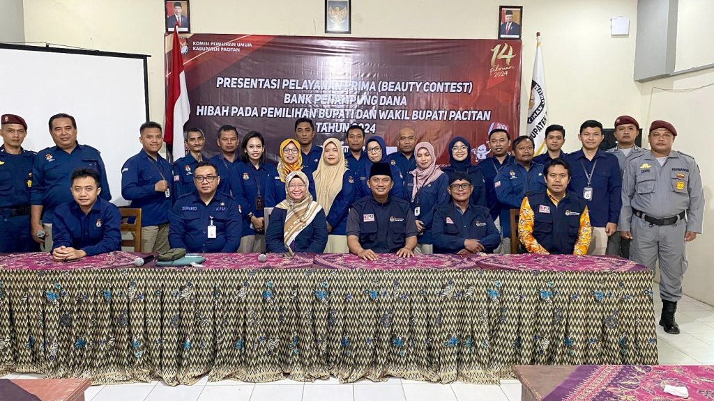 Apa itu beauty contest? Tentu ini bukanlah ajang kontes kecantikan dalam arti sesungguhnya. Tetapi ajang presentasi sejumlah bank mitra pemerintah, kepada KPU Pacitan. Tujuannya adalah sebagai bahan pertimbangan dalam menentukan bank penyimpan dana hibah Pemilihan Bupati dan Wakil Bupati Pacitan Tahun 2024 mendatang. Ada lima bank yang diundang. Yakni BRI, BNI, BSI, Bank Mandiri dan BPD Jawa Timur. Namun, dalam kesempatan itu, BSI memastikan tidak hadir untuk mengikuti kontes.