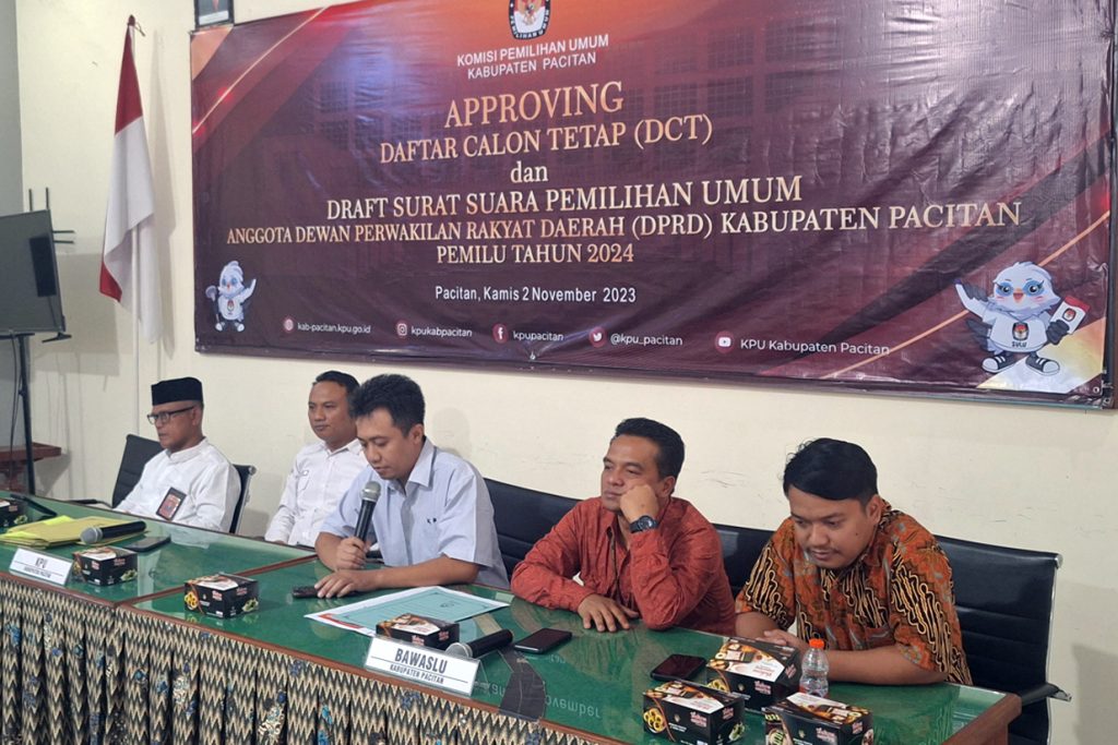 Usai approving, Jumat (3/11), sesuai tahapan, KPU Pacitan menetapkan DCT anggota DPRD Kabupaten Pacitan untuk Pemilu Tahun 2024. Ditetapkan sebanyak 457 orang DCT, yang tersebar di enam dapil dari 15 partai politik. Setelah resmi ditetapkan, persiapan pengumuman pun dilakukan.