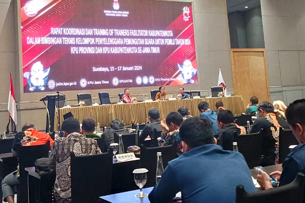 Seharian di Pacitan, pada hari itu KPU Pacitan melaksanakan rakor persiapan pelaksanaan kampanye rapat umum. Di hari itu pula, turun kembali undangan dari KPU Jawa Timur untuk agenda bimbingan teknis penyusunan keputusan jadwal dan lokasi kampanye rapat umum. Untuk kedua kalinya dalam pekan kemarin, Kamis (18/1) saya kembali berangkat ke Surabaya.